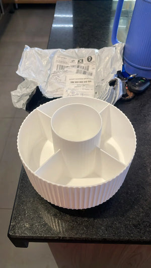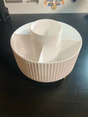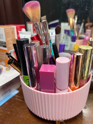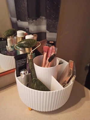 Wyróżnia się obrotową bazą i przegrodami dopasowanymi do kosmetyków męskich. Inni oferują tylko pudełka; ten organizer oszczędza czas i miejsce oraz wygląda stylowo.