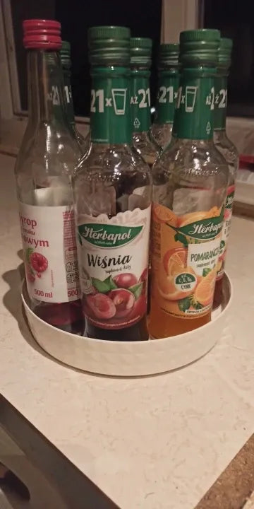 Nasz organizer z obrotem o 360 stopni, eleganckim designem i solidną antypoślizgową podstawą przewyższa inne. Pasuje bez wysiłku wszędzie, zwiększając zarówno dostępność, jak i estetykę w twojej kuchni.